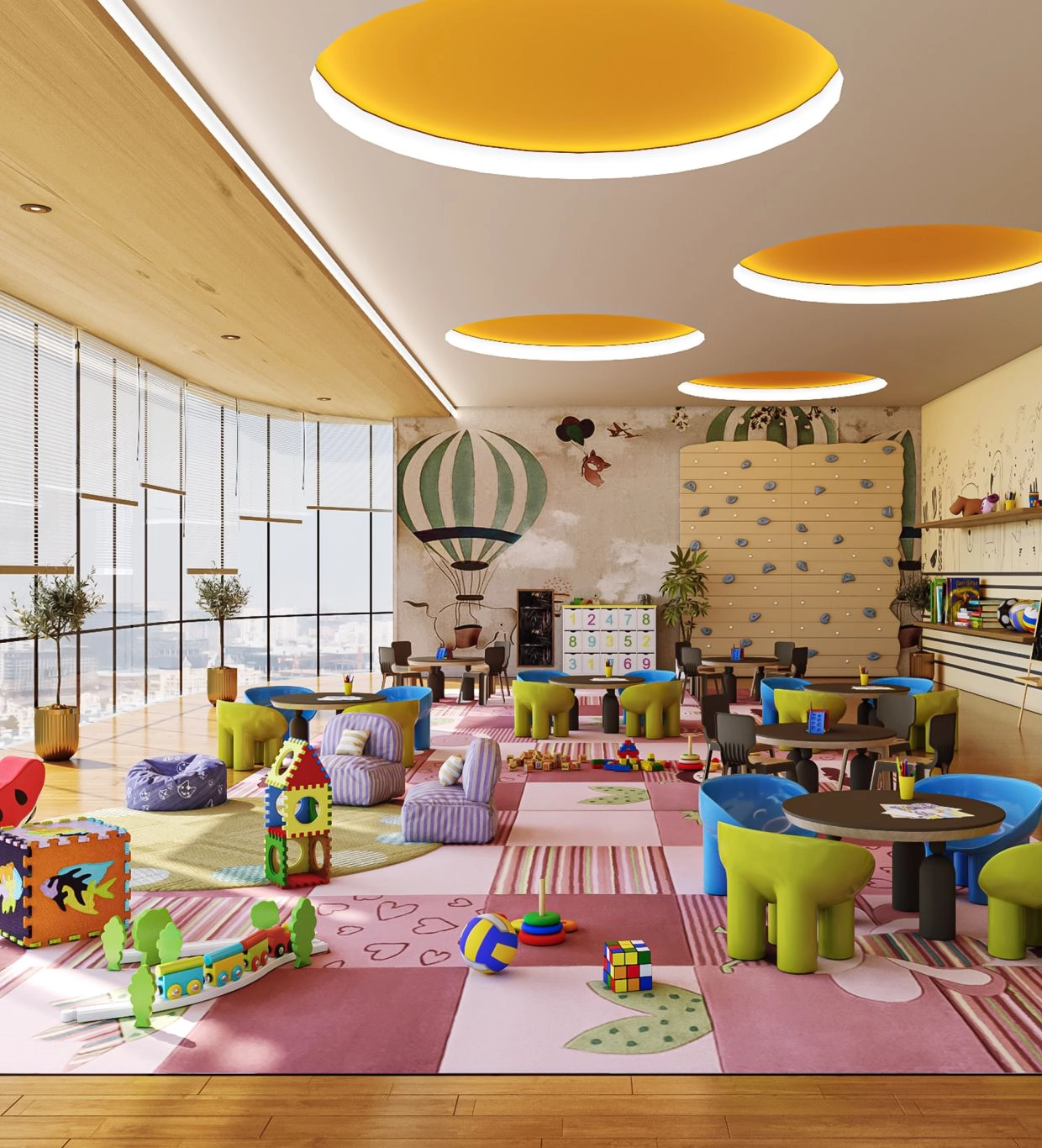 The thoughtfully designed crèche provides a safe haven for your little ones, allowing parents peace of mind while they focus on their tasks.